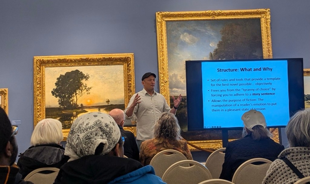 On Saturday, January 25th, I’ll be in the Haggin Museum at 2 o’clock giving my world “famous” one-hour presentation on how to write a novel. I’ll be covering everything from KM Weiland to Dwight Swain with a focus on how simple techniques compose macro-structure in modern writing. It should be instructive and fun, but if it’s boring then at least we’ll be in The Haggin which is a gorgeous place be no matter what mood you’re in.